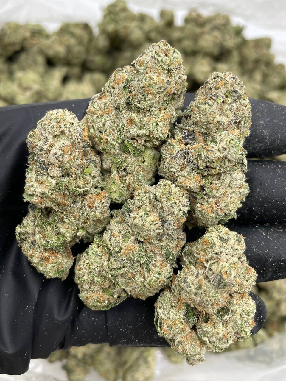 - Heavy trichome coverage, giving it a frosty appearance