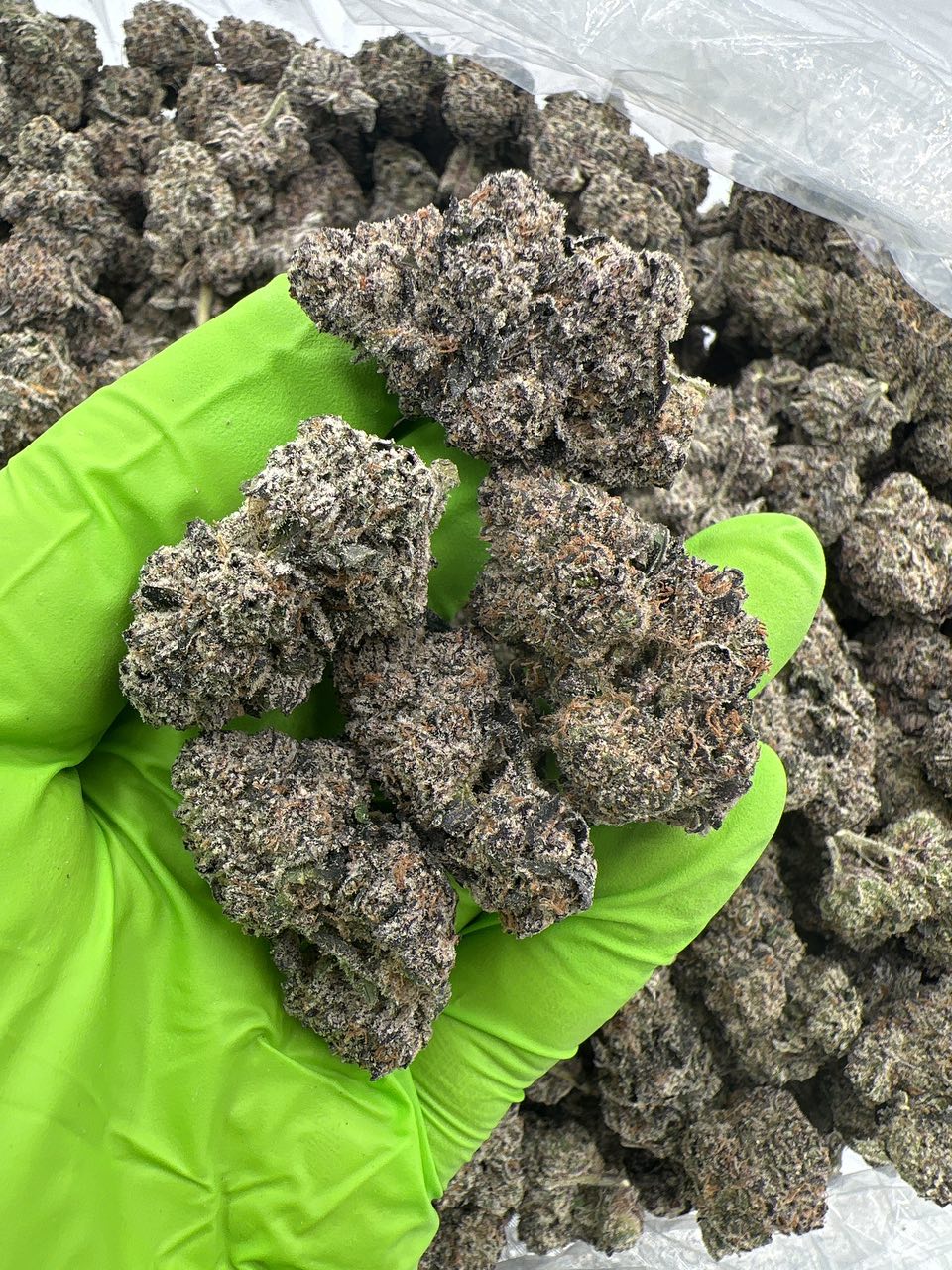- Dense, frosty buds